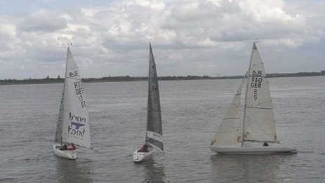 Ohne Bildbeweis berichtet Heiner Forstmann von seinem Ersterlebnis: „Habe heute in Steinhude wunderschön gesegelt gegen GBR 27. 3 Stunden bei 3 bis 4 Bft.